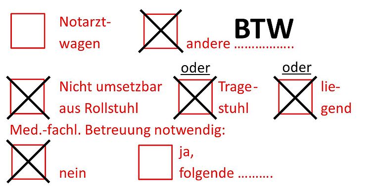 Achten Sie bitte darauf, dass Ihr Arzt das erforderliche Beförderungsmittel bzw. Beförderungsart vermerkt (sitzend, liegend, Tragestuhl, Rollstuhl).